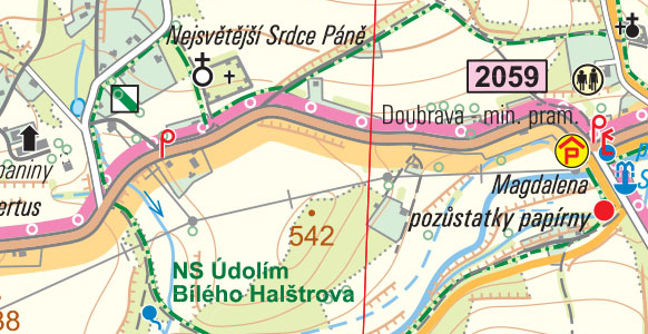 | Info's | Wanderkarte mit Rad-, Reit- und Skiwegen / Zeichenerklärungen sind tsch, de, eng |