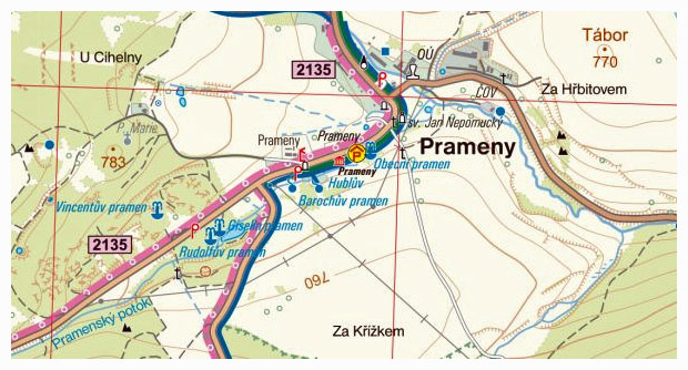 | Info's | Wanderkarte mit Rad-, Reit- und Skiwegen / Zeichenerklärungen sind tsch, de, eng |