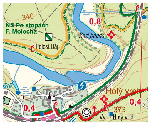 | Info's | Wanderkarte mit Rad- und Reitwegen / Zeichenerklärungen sind tsch, de, eng |